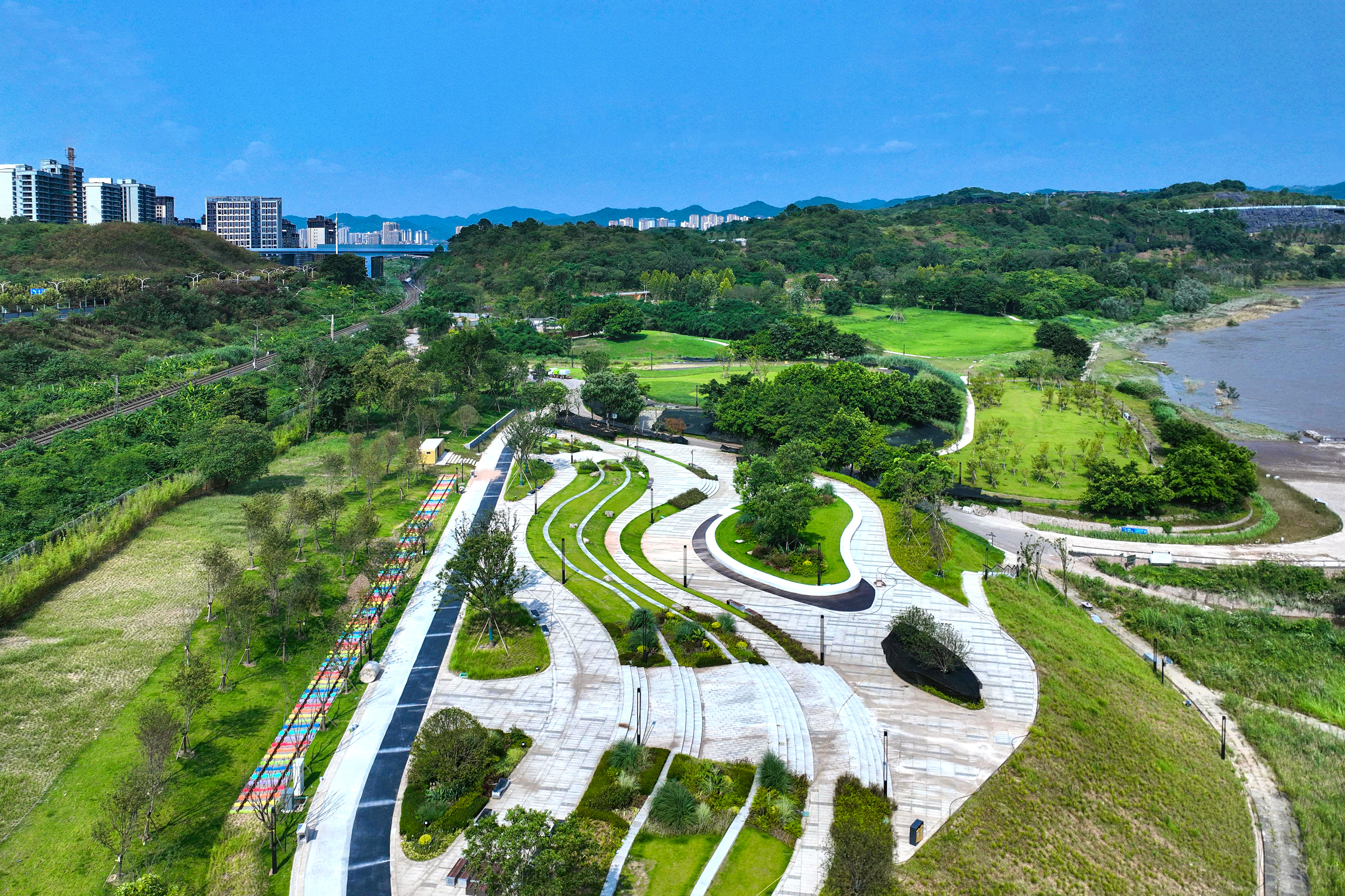 中冶建工承建的重慶“兩江四岸”治理提升長(zhǎng)江北岸線延伸工程釣魚嘴濱江段項(xiàng)目,是重慶市重點(diǎn)工程,也是“兩江四岸”治理提升重點(diǎn)項(xiàng)目,全長(zhǎng)約4.2公里,通過(guò)微改造,巧妙利用現(xiàn)有草海、森林、江灘等資源,彰顯原生態(tài)自然景觀,使生態(tài)美景連點(diǎn)成線,讓群眾享受更多開窗見景、推門見綠的城市空間,成為全國(guó)各地增植補(bǔ)綠、打造生態(tài)宜居城市的典范。